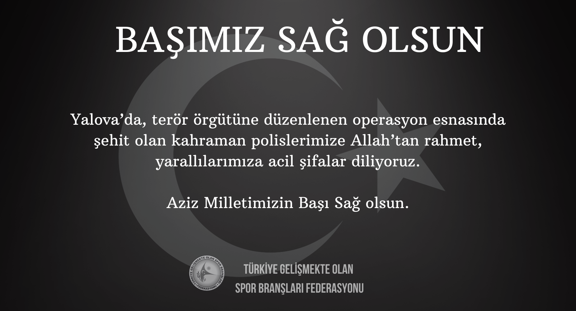 BAŞIMIZ SAĞ OLSUN!Yalova'da terör örgütüne düzenlenen operasyon esnasında şehit olan kahraman polislerimize Allah'tan rahmet, yaralılarımıza acil şifalar diliyoruz.Aziz Milletimizin Başı Sağ Olsun.