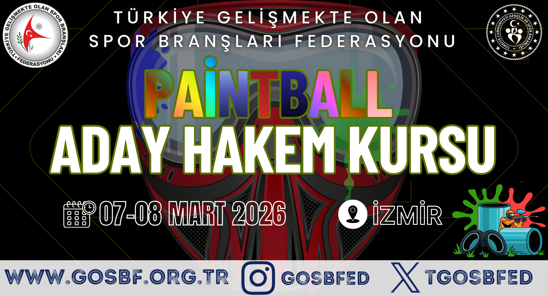 07-08 Mart 2026 tarihlerinde İzmir ilinde Paintball Aday Hakem Kursu açılacaktır.